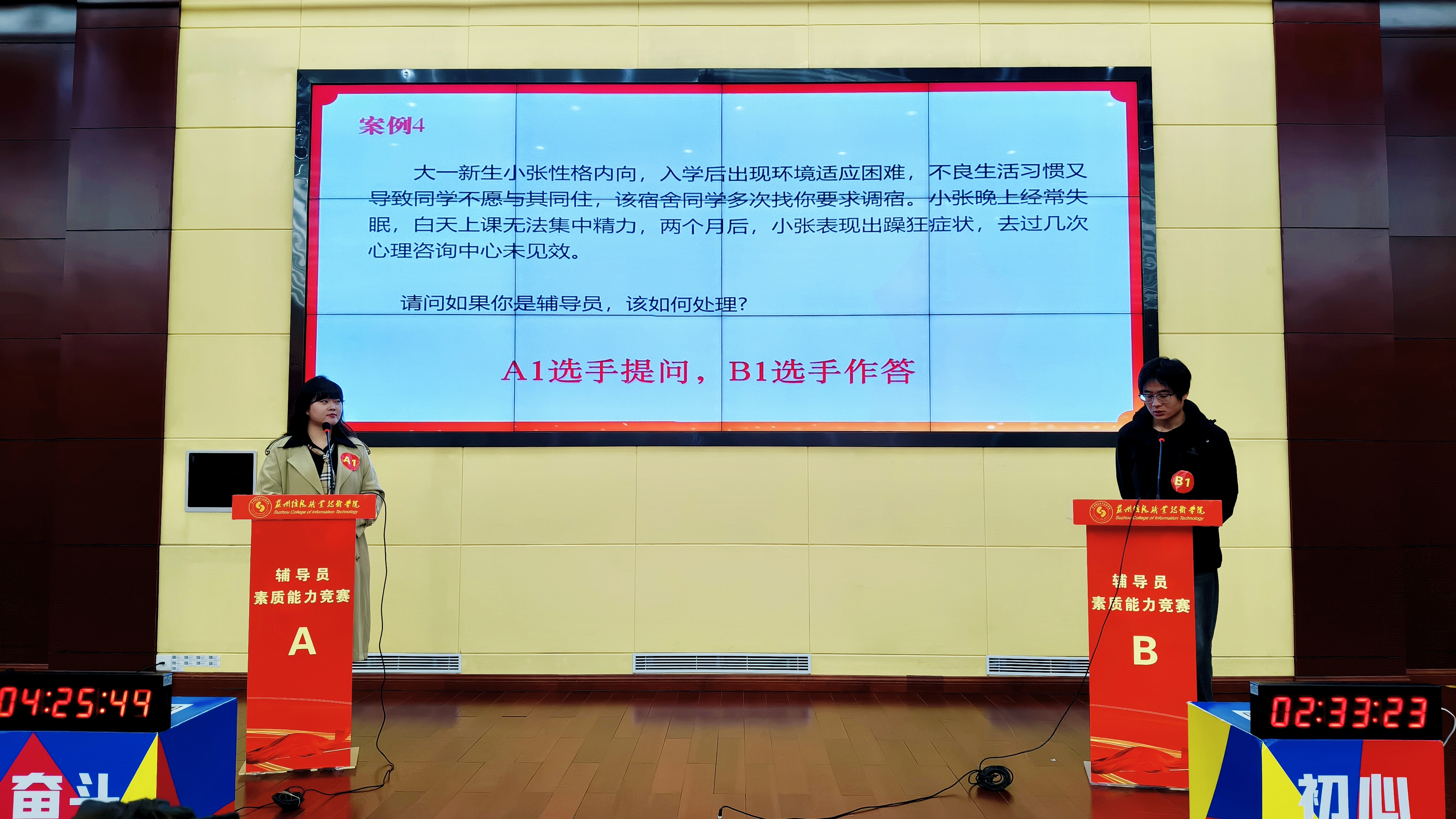 “案例研讨”环节采用“AB角问答”的形式,两名辅导员先后围绕两个复杂案例,通过“你问我答、相互追问”的方式进行交互式研讨。双方共同辨析问题本质、探讨育人规律、提出解决方案,精彩展现了辅导员的理论应用能力、逻辑思维与协同应变水平。
