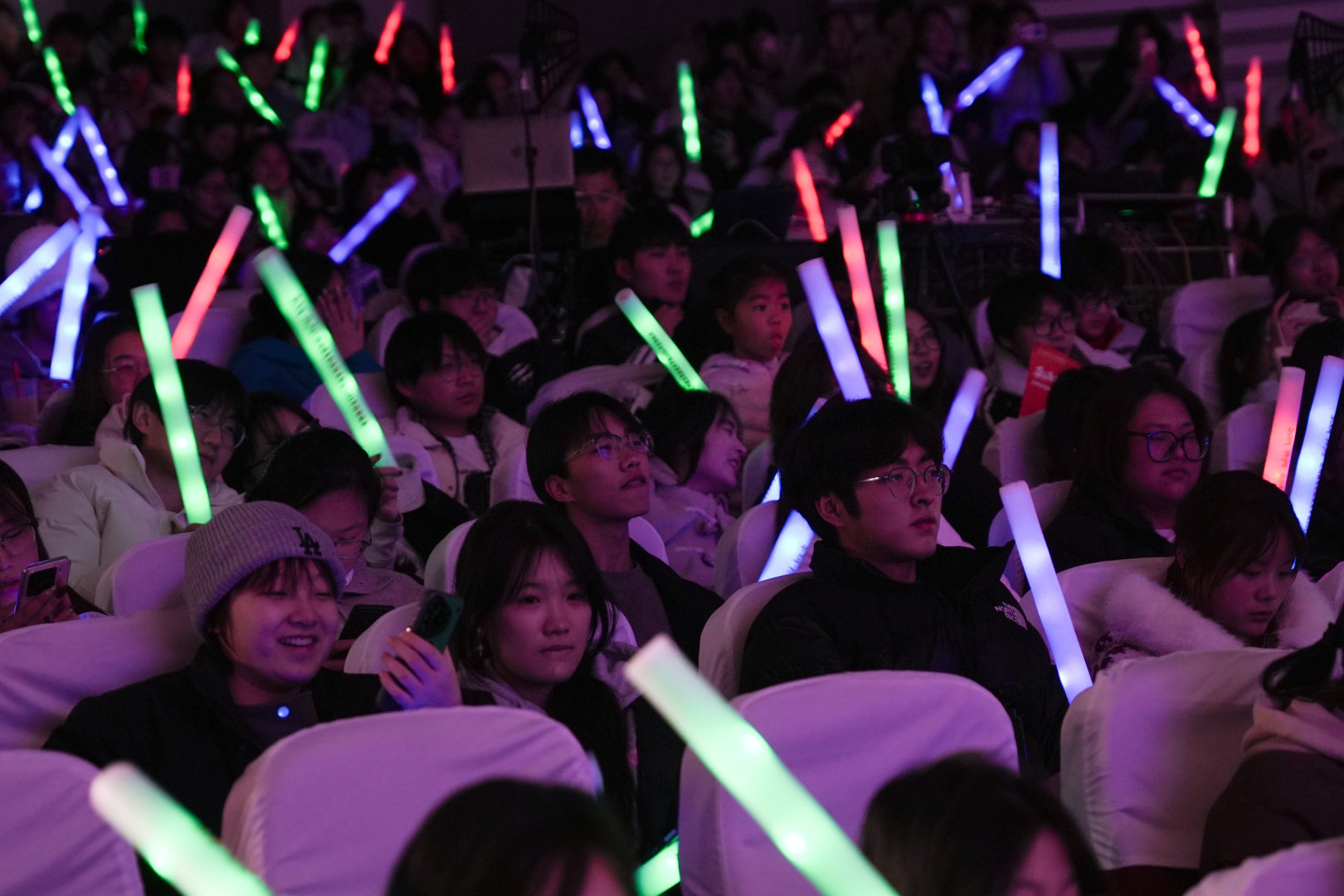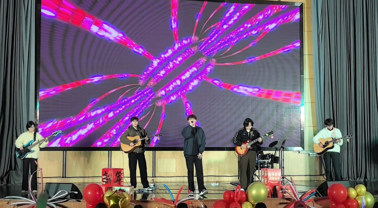 晚会在陈雅雯、邓璇、朱畅等同学的开场舞中拉开序幕,灵动舞姿瞬间点燃现场氛围。随后,由唐巧艳、钟圣悦同学带来歌曲《天海一心》,传递山海共情、心向远方的炽热与坚定;袁作佳、康金飞同学合唱《我们的歌》,重温青春岁月里的共同情愫;贰幺玖乐队激情演绎《不再犹豫》,将梦想的执着与无畏展现得淋漓尽致;梧桐道乐队的《麻雀》唱出平凡生活里的倔强与光芒,引发全场共鸣,每一首旋律都直抵人心。
