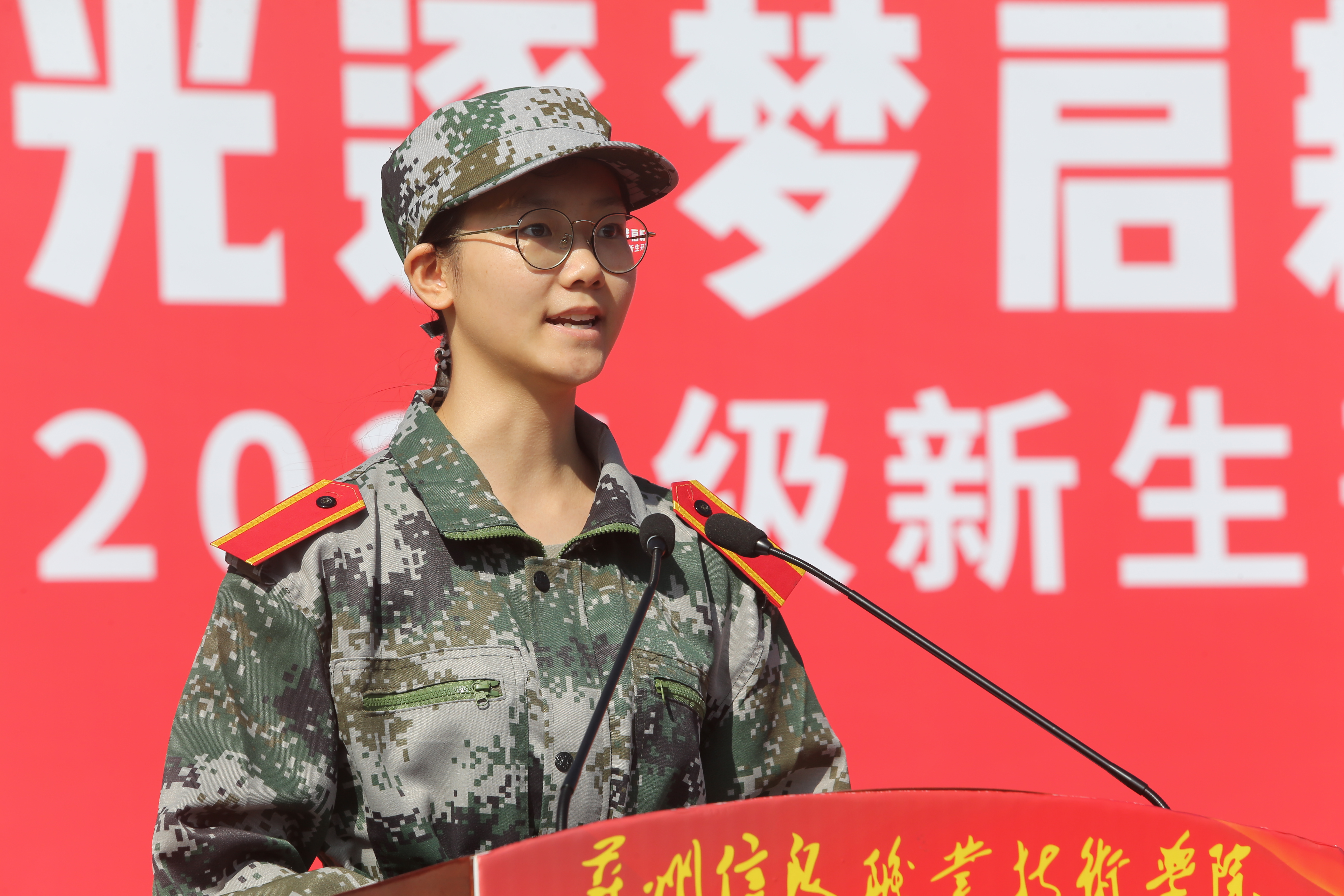 学生工作处处长林育芳带领2025级全体新生宣誓,立志为实现中华民族伟大复兴,努力学习、拼搏奋斗。
